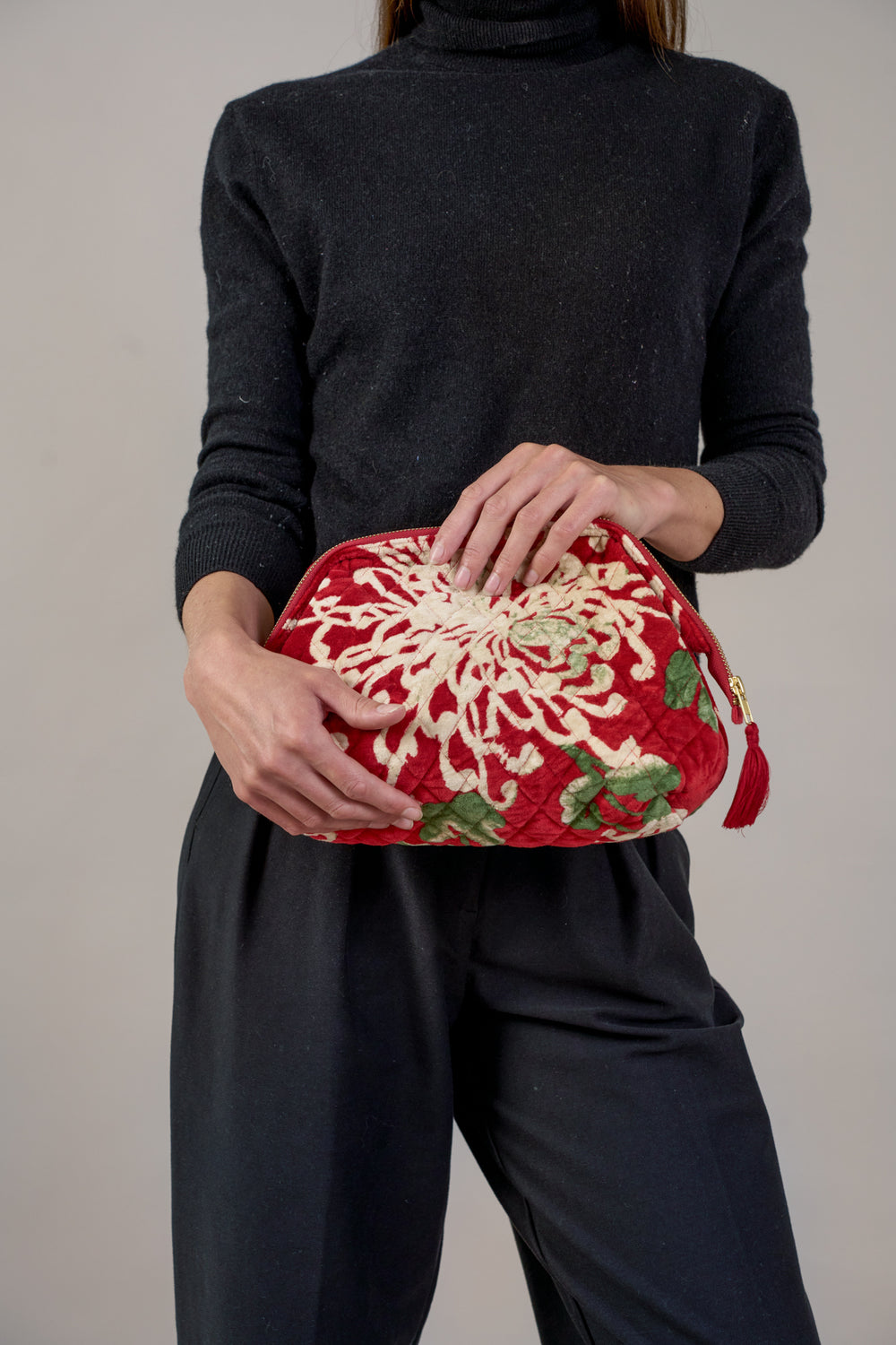 This 100% organic cotton velvet pouch is perfect for throwing in your handbag, taking on a trip away, and even for elevating your look as a clutch bag. With a large main compartment and two pockets in the lining, this velvet pouch has enough room to store all the products you’d need for any event.