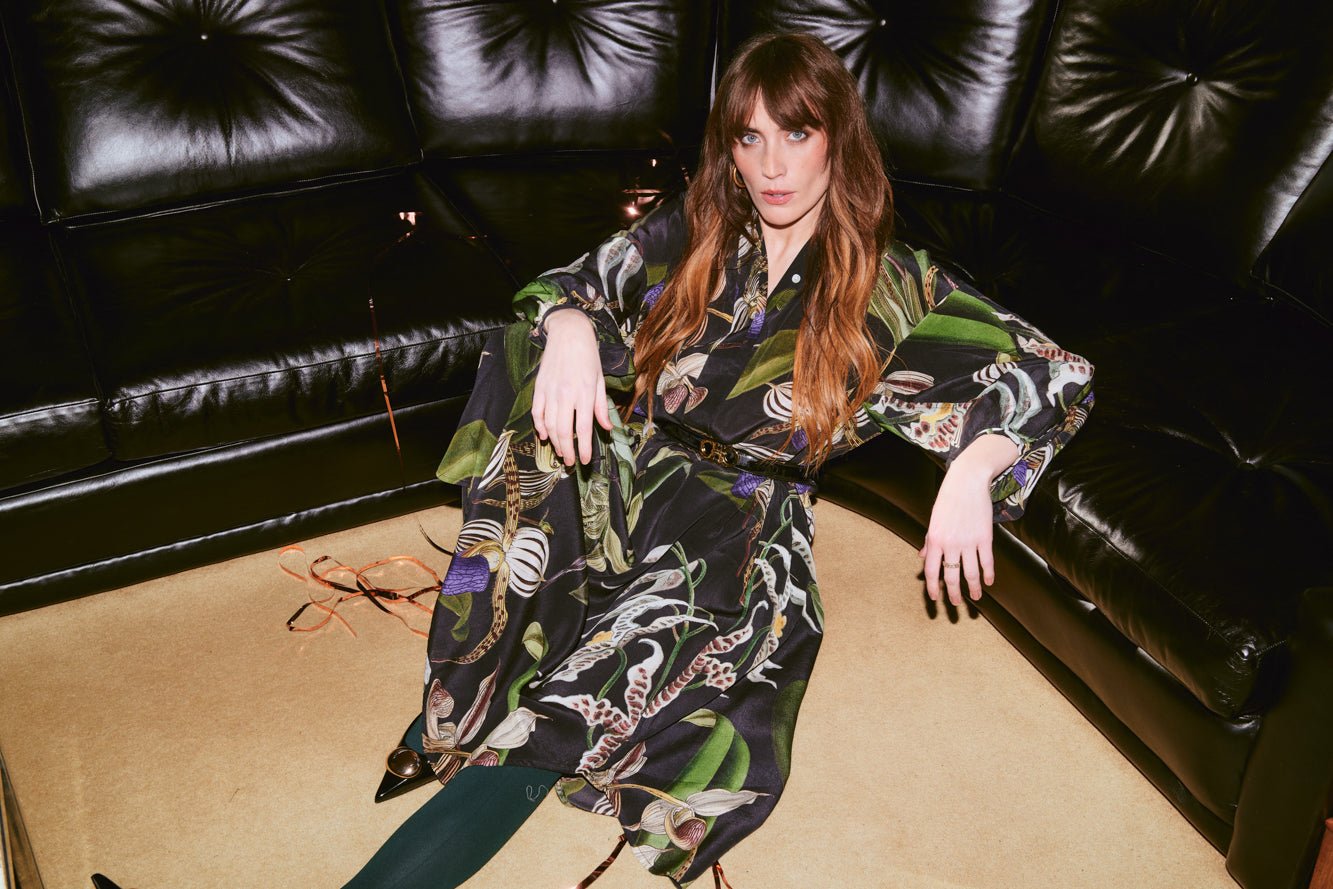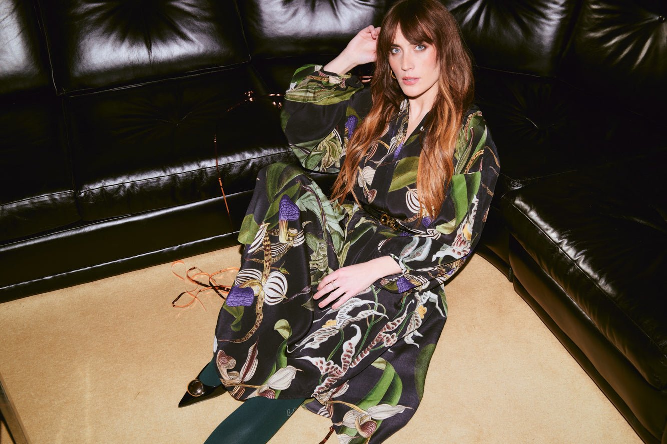Our crepe Darcy dress features a flattering mandarin collar with a concealed placket front, pockets and loose-fitting balloon sleeves. Our mid-length dress is half lined in organic cotton for ultimate comfort.