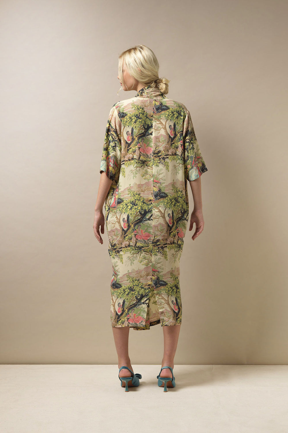 We love a classic French toile de Jouy, so we have stuck with the 'pastoral romantic' genre for this print, although the colourway is far from typical! The slight hint of black mixed through these delicate pastel shades makes this print eminently wearable and provides the perfect undertone for pairing up the perfect outfit.