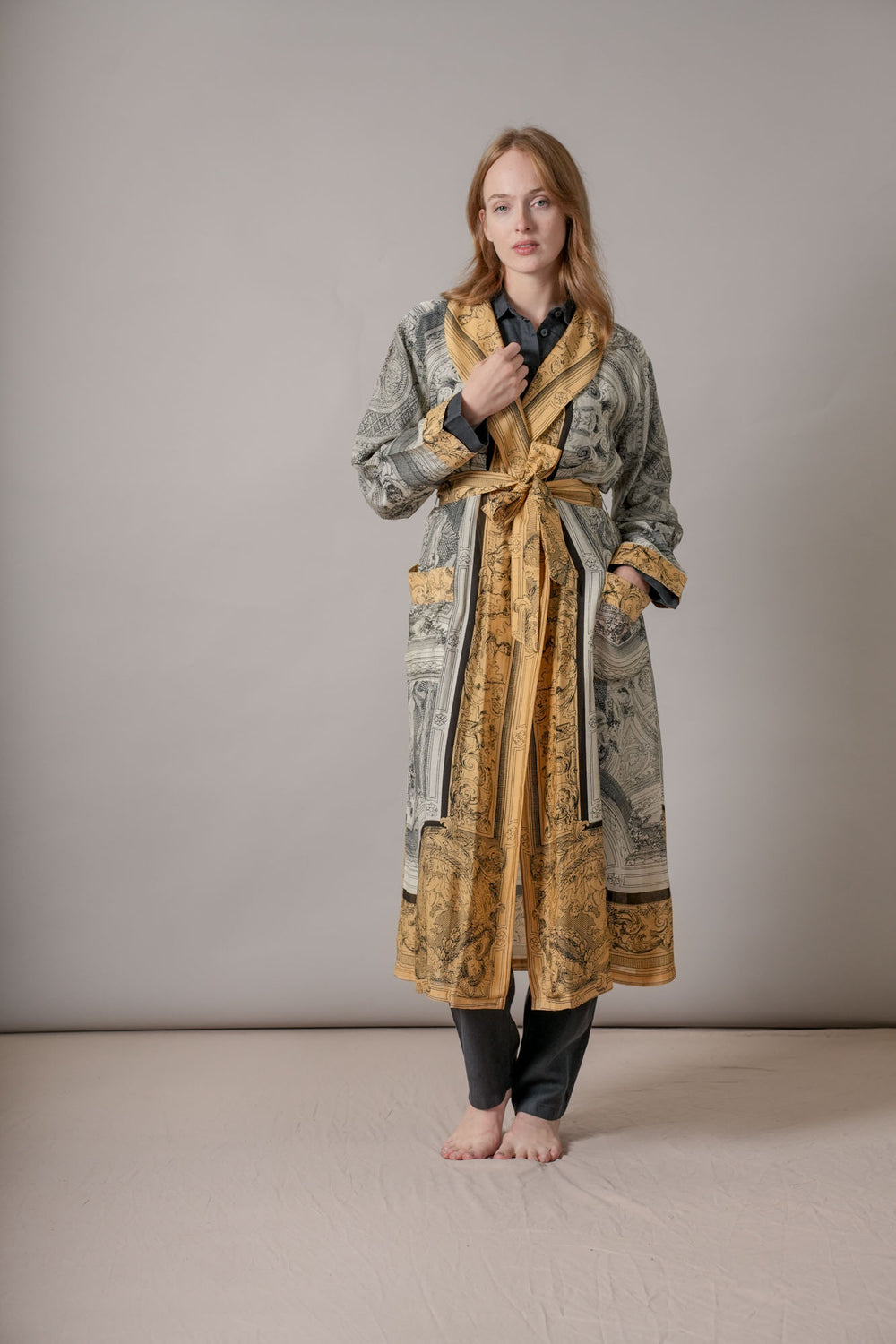 This Gown is made from a custom blend of modal and cupro which creates a silky smooth lightweight material while having a more sustainable impact on the environment. This lightweight design falls to an elegant long length and features a fold over collar, complete with self-tie waist belt and front patch pockets. This gown is perfect as a luxurious house coat or for layering as a chic accessory to your favourite outfit.