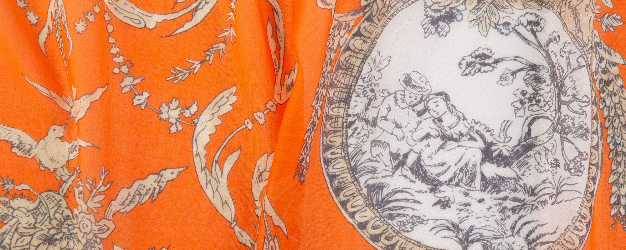The most romantic print to drop this season is our Valentine print, featuring beautiful miniature scenes of doting couples in hand-drawn frames surrounded by flowers and pairs of doves- the classic love birds!
