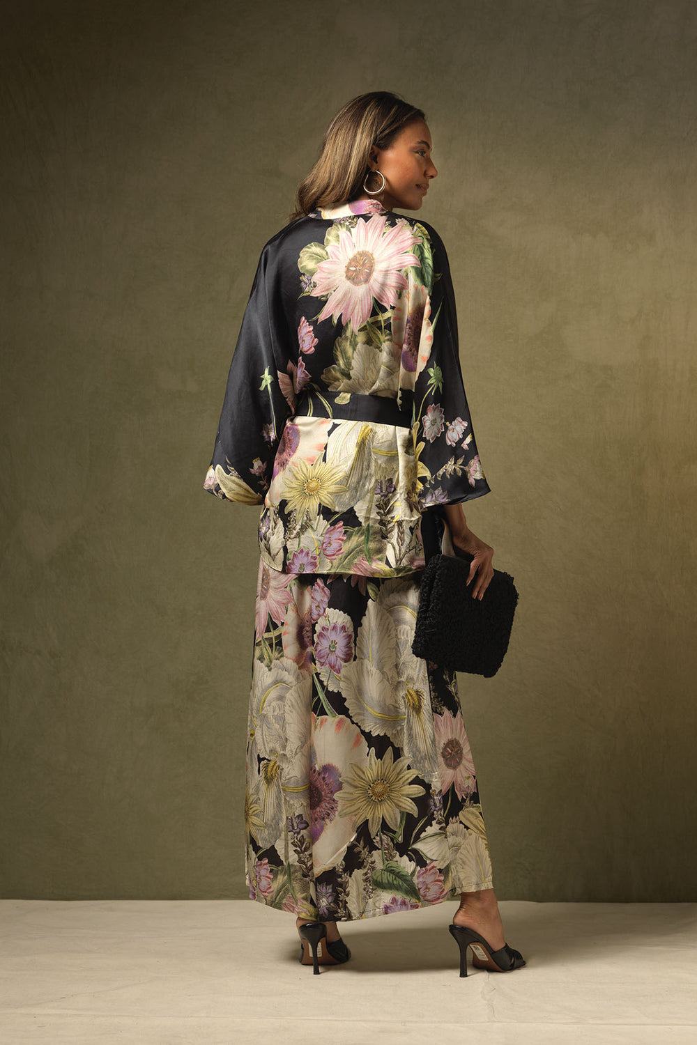 Add a touch of glamour to your A/W wardrobe with this beautiful satin kimono-style wrap jacket! It can be worn loose or tied at the front creating an elegant hourglass silhouette.