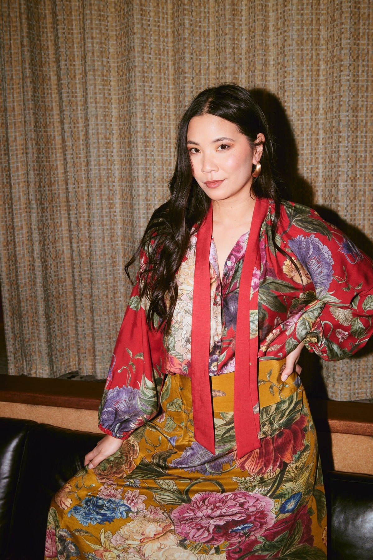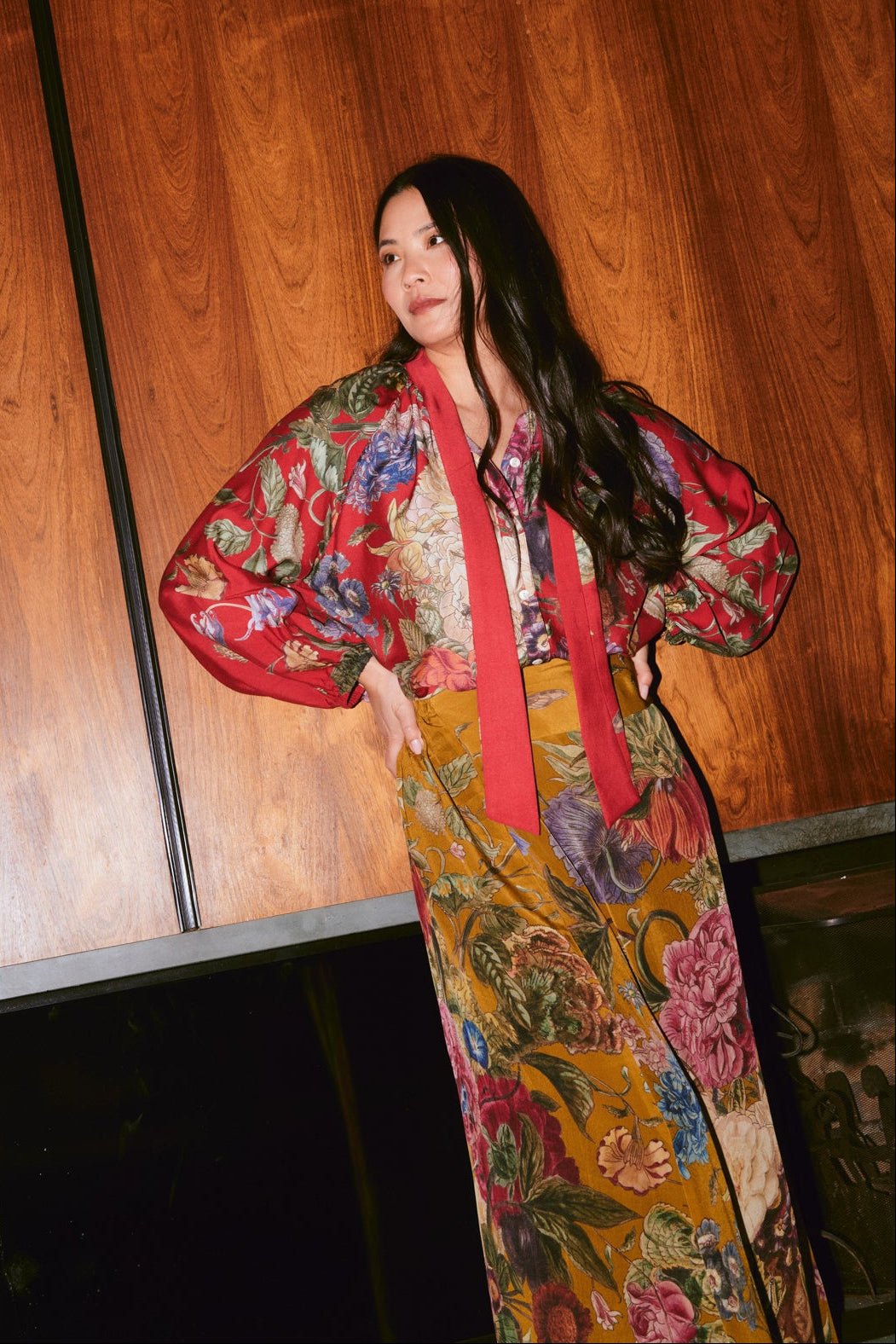 This classic shape blouse shows our prints beautifully. The PussyBow can be teamed with our A line skirt for a more formal look or worn simply as a casual blouse.