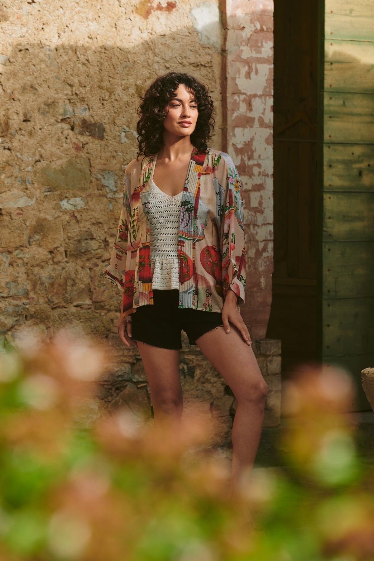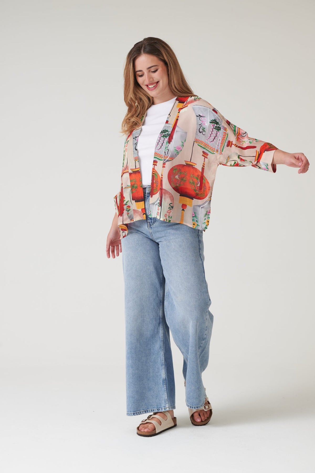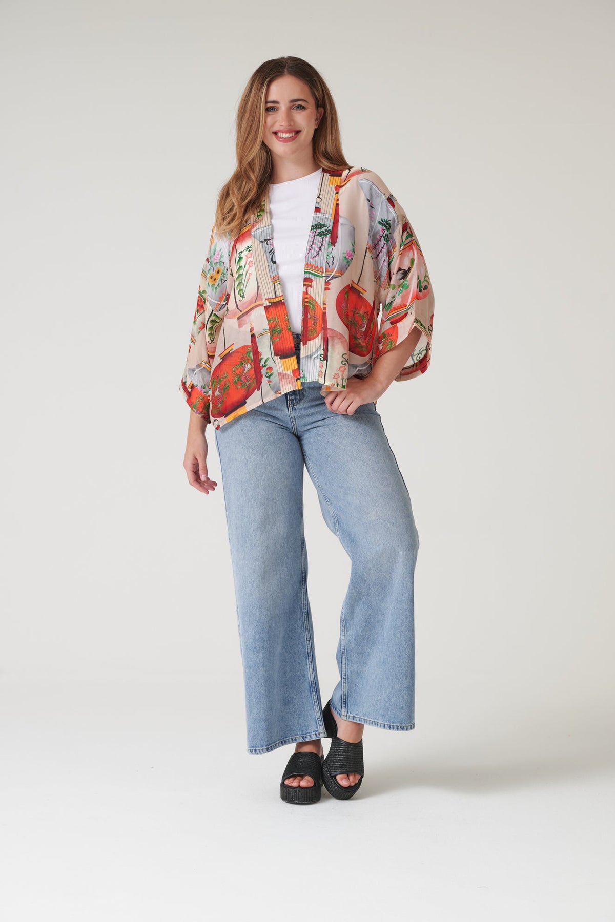 Our bestselling kimono jackets have loose ¾ length sleeves, an open front and a lightly embroidered lapel. Pair with a matching camisole and your favourite jeans in summer or layer over a polo neck during the cooler months.