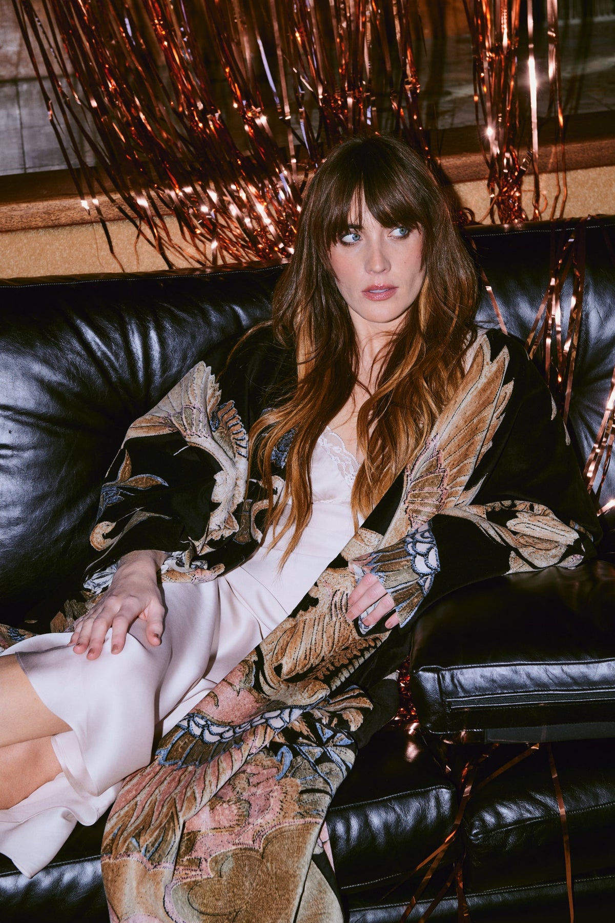 A luxury statement piece showing the full beauty of our bold signature designs. Made from soft cotton velvet with a complimentary printed lining, loose-fit sleeves, and hidden side pockets.